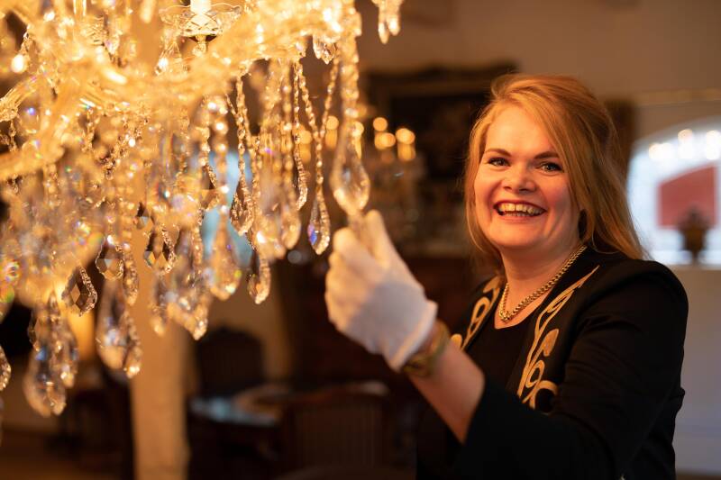 Het best bewaarde element van dit prachtige pand is toch wel de kroonluchter, geleverd door de Groenensteyn Crystal Lighting.